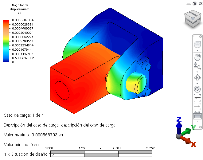 Run Simulation. Empezaremos revisando los resultados del desplazamiento. Como puede ver, los valores de magnitud del desplazamiento aparecen por defecto en el entorno de resultados.