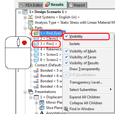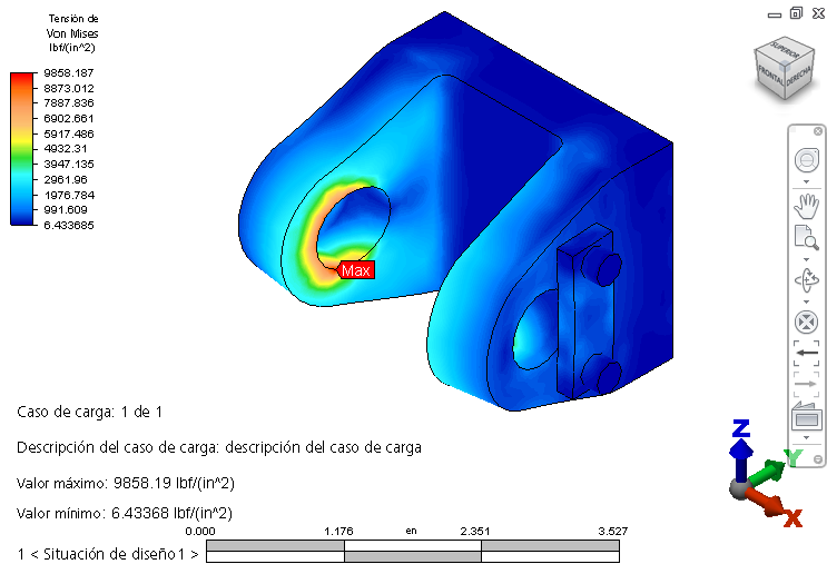 Maximum. Debemos ocultar el ojo de la varilla y las piezas del pasador para ver dónde se produce la tensión máxima.