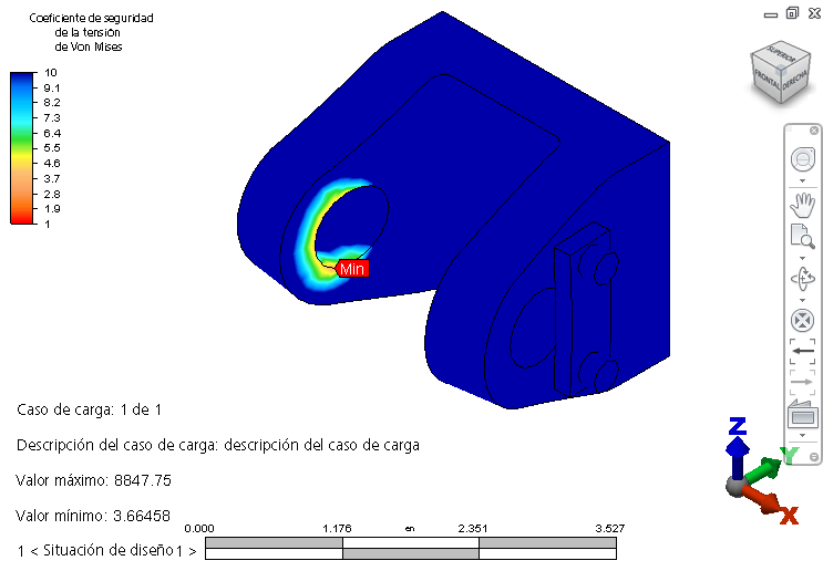 Minimum para marcar el punto en el modelo con el mínimo resultado de coeficiente de seguridad. Debería verse esto: