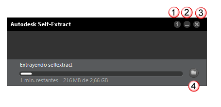| 4 | Abre una ventana con la carpeta en la que se extraen los archivos. La ubicación por defecto es C:\Autodesk. |