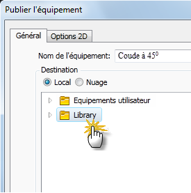 - Après la définition du dossier Equipements utilisateur par défaut ou la création d'un sous-dossier pour l'équipement, déterminez si l'équipement doit être enregistré en local ou publié dans le nuage en sélectionnant le bouton d'option Local ou Nuage.