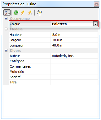 La seconde méthode consiste à utiliser le navigateur Propriétés de l'usine.