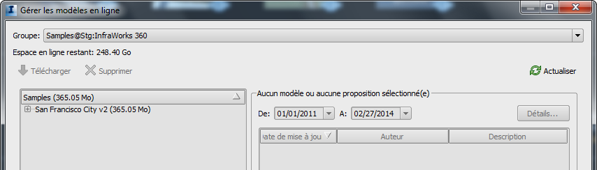 Cliquez sur Gérer les modèles en ligne dans la page de démarrage . Le groupe de fonctions affiche des informations sur tous les modèles et propositions partagés par un groupe de conception.