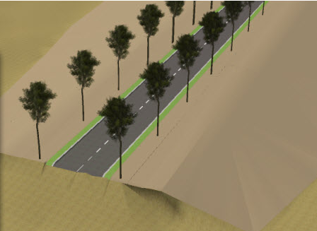 Pour ignorer les styles de route d'InfraWorks 360 et afficher la surface de la route comme surface de couverture, sélectionnez cette option. Si vous sélectionnez cette option, la route ressemble à l'illustration ci-dessous :