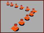 Une série d'éléments de mobilier sont espacés régulièrement le long de la trajectoire.