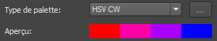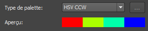 Détermine les couleurs intermédiaires entre la teinte Couleur de et la teinte Couleur à dans le sens inverse des aiguilles d'une montre. |