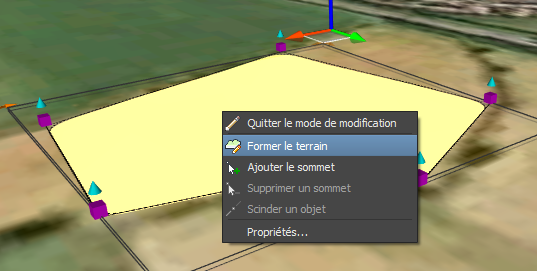 - Cliquez avec le bouton droit de la souris sur la surface de couverture pour ouvrir le menu contextuel, puis sélectionnez Former le terrain.