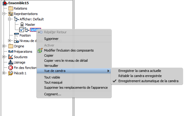Grâce aux nouvelles commandes du menu contextuel de la représentation de vue, vous pouvez enregistrer et rétablir facilement les paramètres de la caméra.