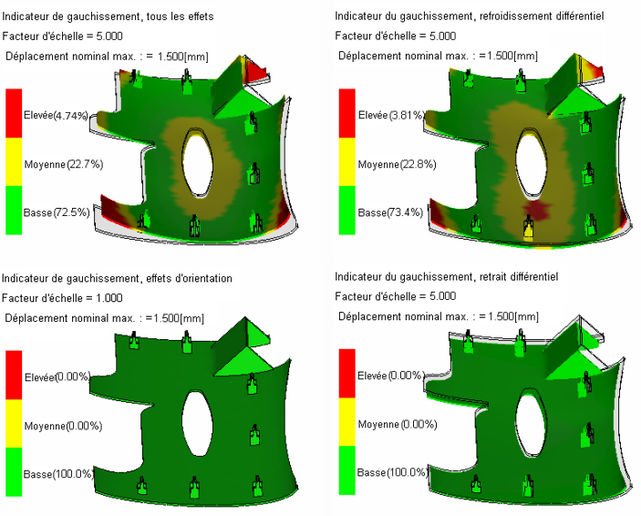 Comparez-les aux cartographies de tous les effets. La cartographie qui ressemble le plus à la cartographie de tous les effets a la plus grande influence sur le gauchissement. Dans ce cas, le refroidissement différentiel ressemble le plus à la cartographie de tous les effets.