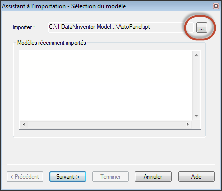 Cliquez sur le bouton représentant des points de suspension dans la boîte de dialogue Assistant à l'importation pour localiser le fichier à importer.