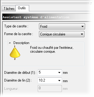 Assurez-vous que la forme de la carotte est définie sur Conique circulaire.