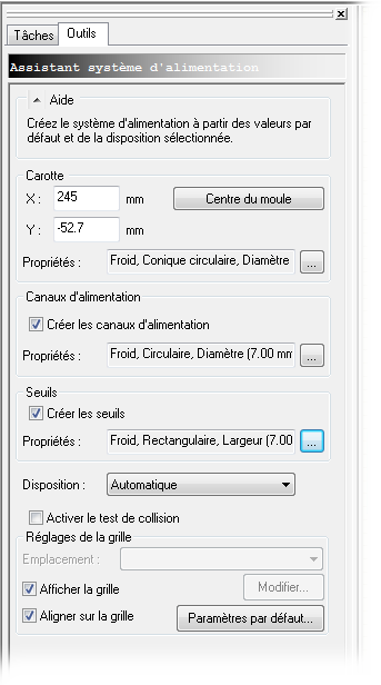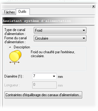 Assurez-vous que la forme du canal d'alimentation est définie sur Circulaire.