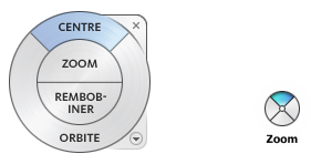 - Centre : permet d'indiquer un point sur un modèle sur lequel ajuster le centre de la vue courante ou modifier le point cible utilisé par certains outils de navigation.