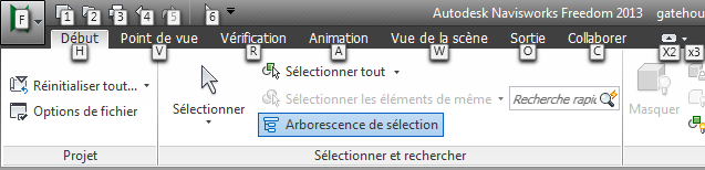 Autodesk Navisworks fournit des touches d'accélération ou des touches d'accès rapide qui vous permettent d'utiliser le clavier plutôt que la souris afin d'interagir avec la fenêtre de l'application.
