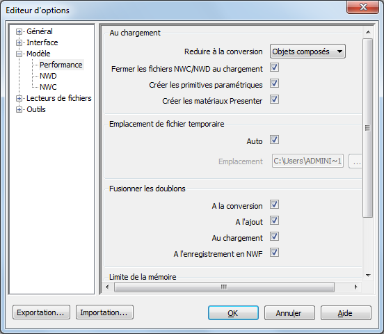 Pour chaque fichier Autodesk Navisworks (NWF et NWD), vous pouvez ajuster l'apparence du modèle ainsi que la vitesse de navigation. Les fichiers Autodesk Navisworks (NWF ou NWD) conservent les options d'affichage et les rechargent à chaque fois que vous ouvrez ces derniers.