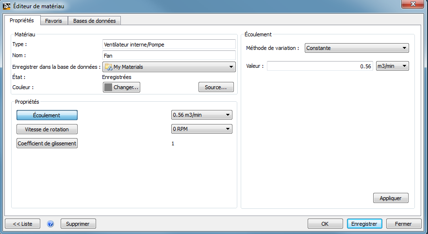Sélectionnez Mes matériaux à partir du menu Enregistrer dans la base de données .