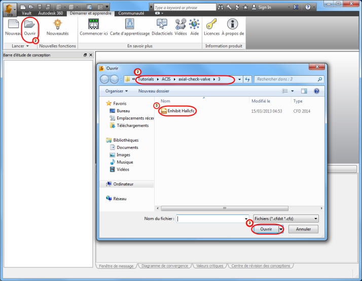 2. Click Ouvrir et accédez à C:\ProgramData\Autodesk\Simulation CFD 2014\Tutorials\Exhibit Hall.
