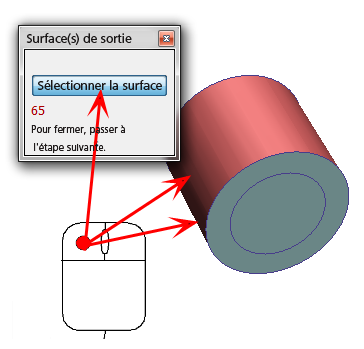 Cliquez sur le bouton ... sur la ligne Surface(s) de sortie. Cliquez sur le bouton Sélectionner la surface . Sélectionnez la ou les surfaces de sortie :