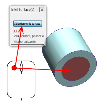 Cliquez sur le bouton ... sur la ligne Surface(s) d'entrée. Cliquez sur le bouton Sélectionner la surface . Sélectionnez l'entrée du souffleur :