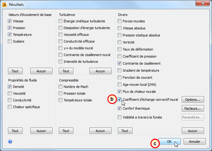 - b. Dans la boîte de dialogue Quantités de résultats, sélectionnez Confort thermique.