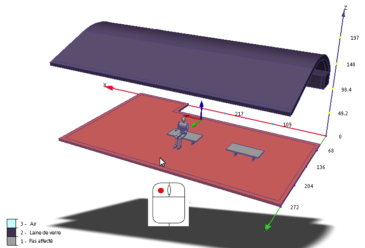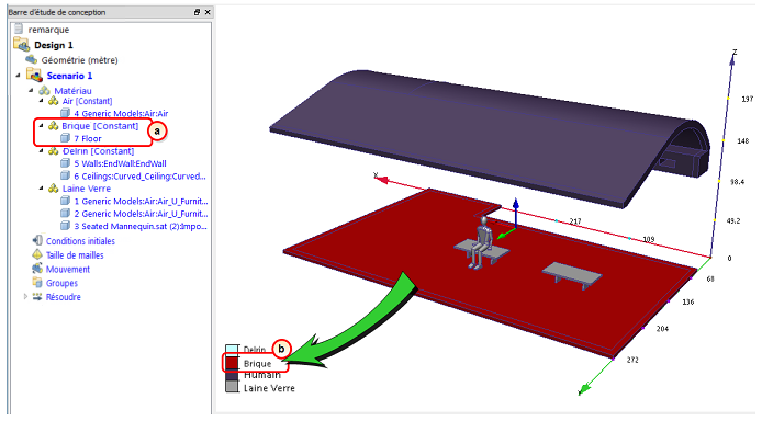 7. Pour vérifier que le matériau Brique est affecté correctement, vérifiez la barre Etude de conception et la couleur de la pièce :