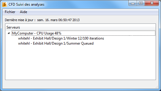 Remarque : Patientez jusqu'à ce que le suivi des analyses CFD indique que le scénario d'été a démarré avant de réaliser cette opération.
