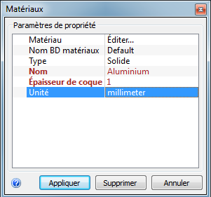 Dans la boîte de dialogue d'édition rapide Matériaux, Type = Solide.