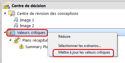 Dans le Centre de décision, cliquez avec le bouton droit de la souris sur Valeurs critiques et cliquez sur Mettre à jour les valeurs critiques.