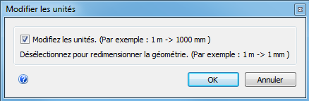 Dans la boîte de dialogue Modifier les unités, conservez la case Modifier les unités cochée et cliquez sur OK :