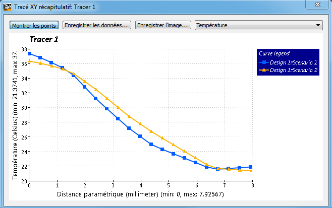 Dans cette étape, nous allons comparer le gradient de température sur la sortie pour les deux scénarios. Nous allons utiliser le tracé récapitulatif créé au cours d'une étape antérieure (lorsque nous avons examiné le gradient de température pour le premier scénario).