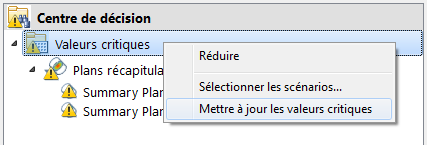 Dans le Centre de décision, cliquez avec le bouton droit de la souris sur Valeurs critiques et cliquez sur Mettre à jour les valeurs critiques.