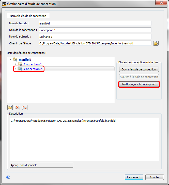 Dans le Gestionnaire d’étude de conception, cliquez sur la nouvelle conception dans votre étude de conception :