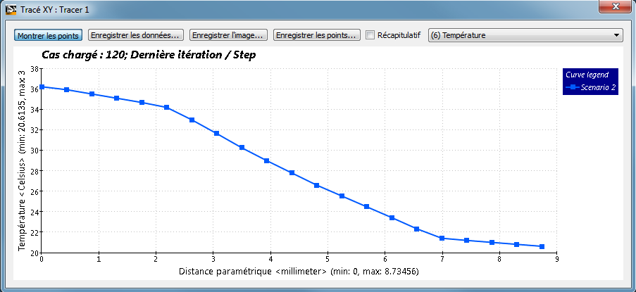 Un grand gradient de température peut être très déplaisant pour l'utilisateur et entraîner des brûlures causées par une eau extrêmement chaude. Dans cette étape, nous allons créer un tracé XY de la température sur la sortie. Cette procédure propose une méthode graphique évidente d'évaluer la variation de la température de sortie.
