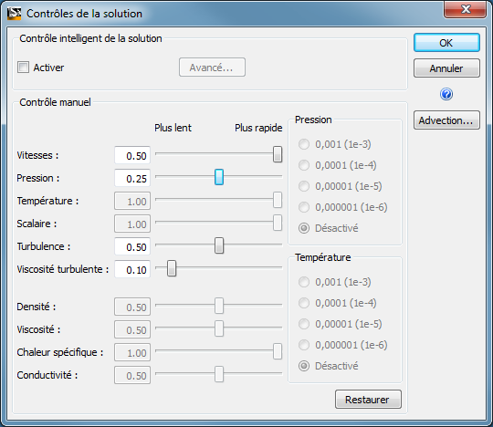 Cliquez sur le bouton Contrôle de la solution et déplacez le curseur Pression sur 0,25