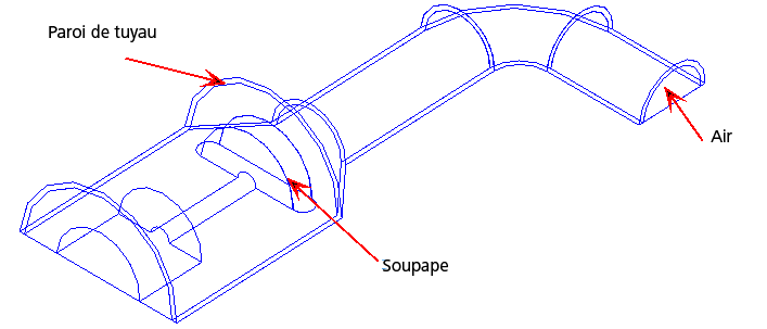 Les extrémités sont fermées dans l'outil de CAO, ce provoque la création automatique du volume d'écoulement. Veuillez remarquer qu'une autre stratégie de CAO consisterait à omettre les fermetures dans l'outil de CAO et à créer le volume interne à l'aide des outils de géométrie Remplissage des cavités dans Autodesk Simulation CFD.