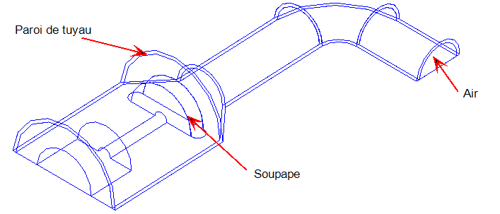 La géométrie d’analyse comprend trois parties : la paroi externe du tuyau, la soupape et l'air.