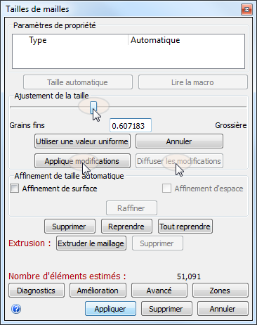 Appliquez la Définition automatique de la taille de mailles à l'aide de l'UNE des méthodes suivantes :