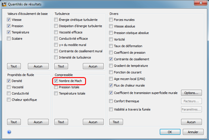 Activez la sortie en nombre de Mach en sélectionnant Nombre de Mach . Cliquez sur OK .