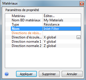 Sélectionnez sur le filtre une surface normale à l'écoulement.