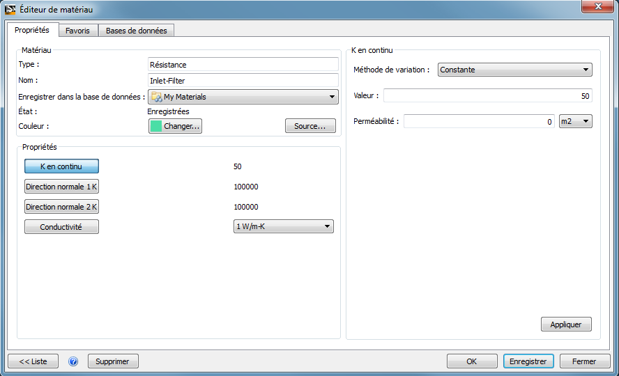 Sélectionnez Mes matériaux à partir du menu Enregistrer dans la base de données .