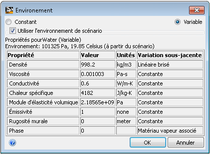 Pour autoriser les variations de densité, cliquez sur Définir... sur la ligne Environnement. Dans la boîte de dialogue d'environnement du matériau, sélectionnez Variable et cliquez sur OK .