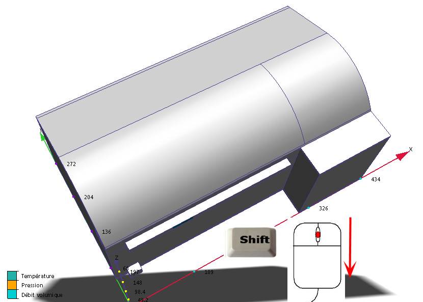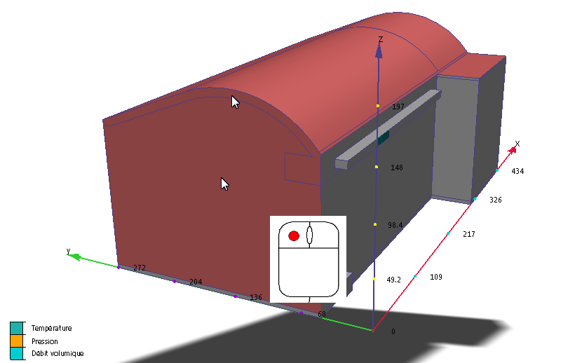5. Faites pivoter le modèle de manière à afficher les surfaces sur la partie avant (opposée au système d'alimentation et de retour) du hall.