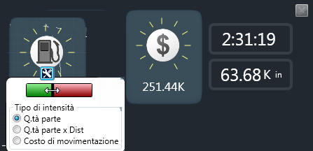 È possibile analizzare i costi di movimentazione dei prodotti utilizzando diverse variabili. Il risultato consente di ottimizzare il posizionamento degli asset di fabbrica nel layout. È possibile regolare le variabili di analisi.