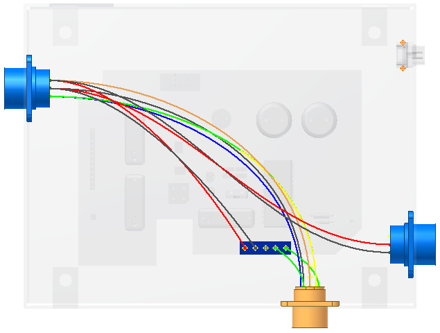 - L'opzione Senza curvatura naturale consente di creare wire e cavi che non sono tangenti alla direzione esterna assegnata al connettore associato. Wire e cavi creati senza tangenza vengono visualizzati come linee dritte che collegano due punti.