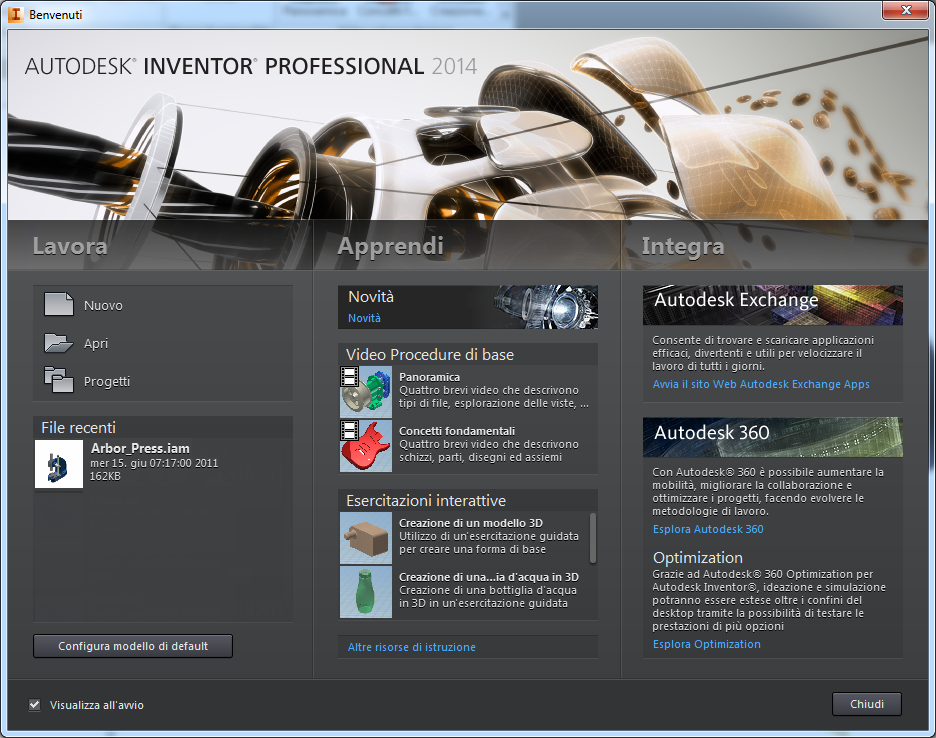 Se Autodesk Inventor LT è nello stato zero doc (nessun file aperto), è possibile accedere direttamente al comando Progetti nella schermata iniziale.