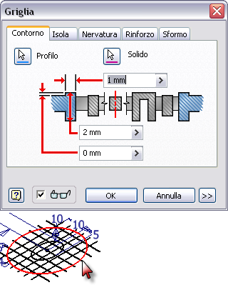 Nella scheda Modello 3D, gruppo Parte in plastica, fare clic sul comando Griglia.