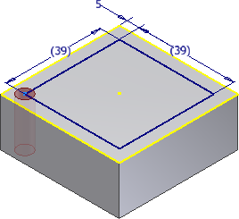 - Selezionare uno spigolo, trascinarlo all'interno e fare clic per posizionarlo. Tutti gli spigoli vengono evidenziati e trascinati. Se gli spigoli non vengono evidenziati, fare clic con il pulsante destro del mouse e verificare che le opzioni Selezione linea chiusa e Vincola offset siano selezionate nel menu di overflow e riprovare ad effettuare la selezione.