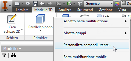 - Fare clic con il pulsante destro del mouse sul gruppo di schede e selezionare Personalizza comandi utente.