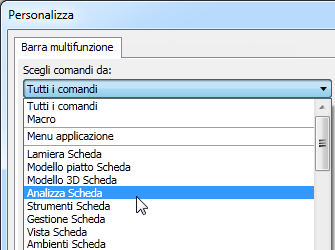 - Nella finestra di dialogo, nel menu a discesa Scegli comandi da, fare clic sulla scheda Modello 3D.