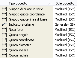 - Modificare lo Stile oggetto per tutti i tipi di quota che utilizzano l'impostazione Default (ISO) in Modified (ISO), come mostrato nell'immagine seguente.